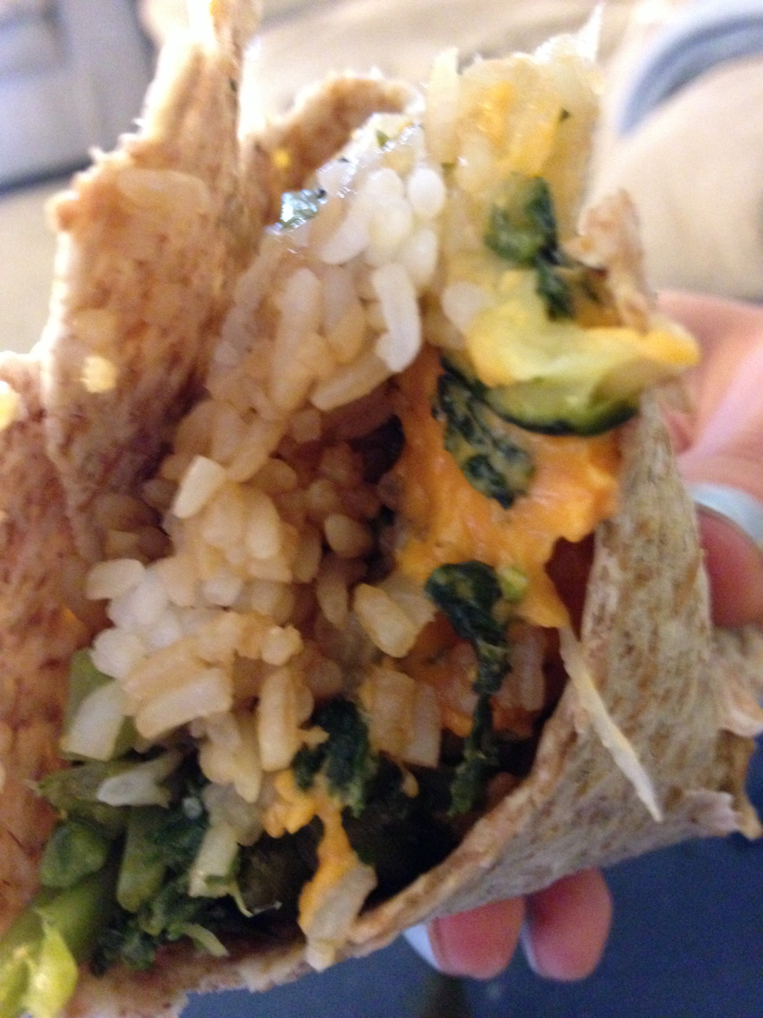 Then I warmed up some leftover rice and an Ezekiel Sprouted Flour Tortilla.