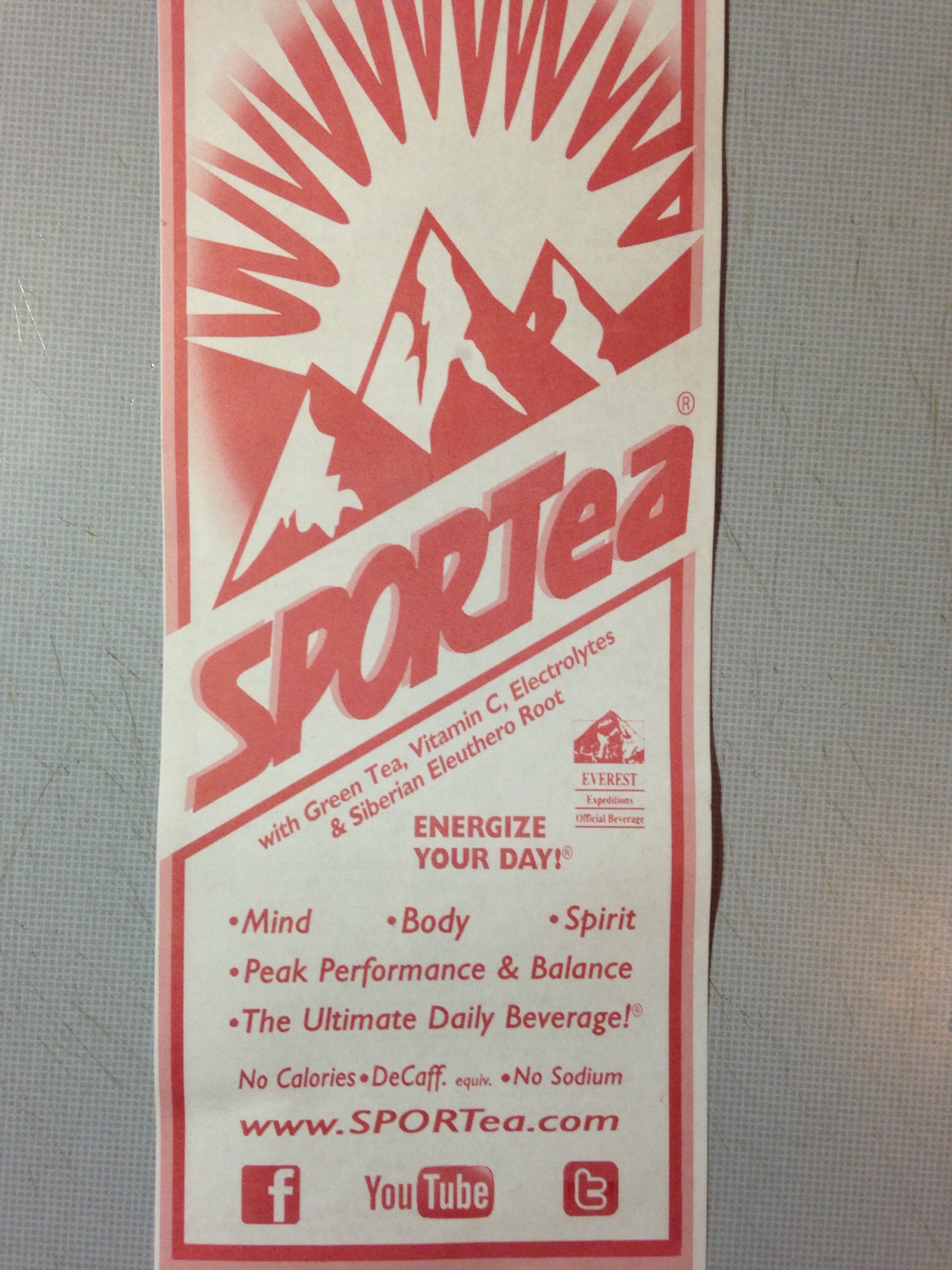 SPORTea is a tea with No calories, No caffeine, and No sodium.