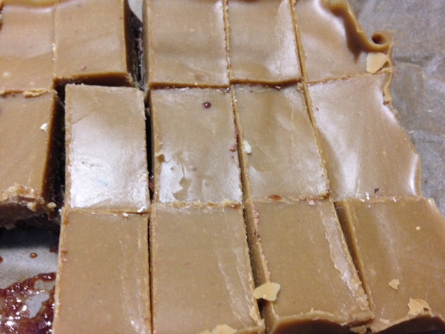 This recipe is super easy and is done in two steps so you get that beautiful layer of chocolate and walnuts on the bottom and sunflower seed butter on the top! Now, my pictures didn’t turn out quite as lovely as Trina’s did, but it tastes great, which is the best part!