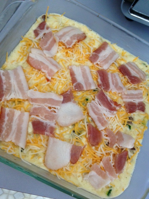 - Top with slices of un-cooked bacon.
