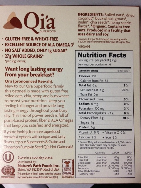I recently found a product called Qi’a by Nature’s Path Organic. Qi’a is an oatmeal made with gluten-free rolled oats, chia, hemp and buckwheat to boost your nutrition, keep you feeling full longer and provide long lasting energy. I love the convenience of these packets and that they don’t sacrifice healthy ingredients just to make them convenient like most processed food products.