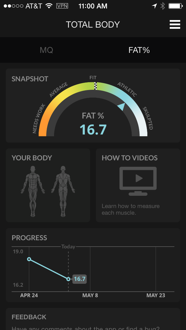 I will continue working on improving my numbers until I reach my goals and then I will use the Skulpt Aim to maintain my progress.