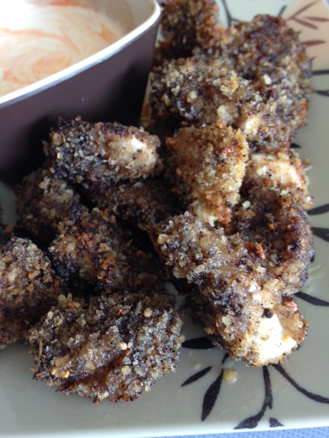 The next sample I tried was their Smoking Gun Cowboy Rub. Most of you know that another thing I love is coffee! This rub uses dark roasted coffee, sugar and their infused peppercorns. I was trying to think of a recipe to use this on and I’ve always loved coffee rubs on chicken so I thought I would make some homemade chicken nuggets using this rub and they turned out so yummy!