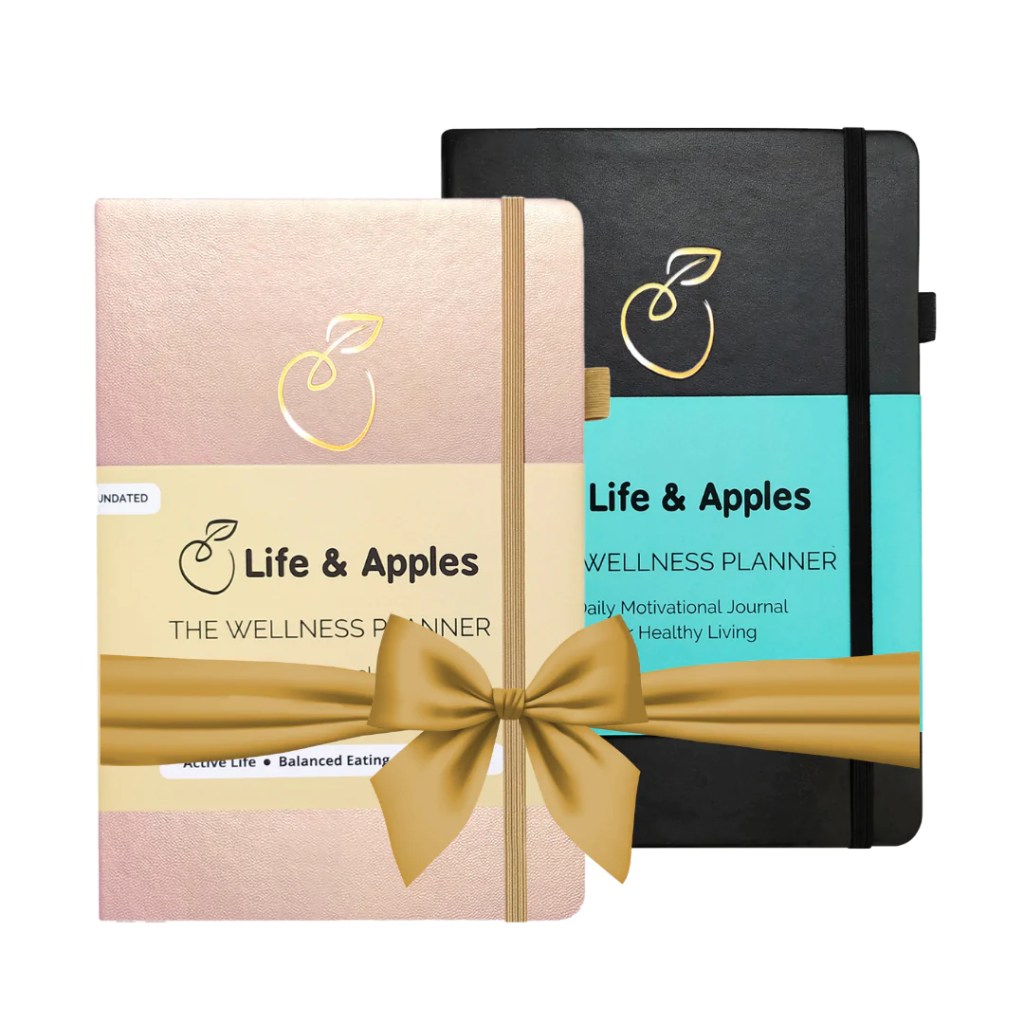 The Wellness Planner by Life & Apples is a daily planner for healthy living. It is a self-care journal, meal planner, and fitness planner all in one. The Wellness Planner helps you achieve your health goals and create healthy habits. It offers support on a weight loss journey, encourages fitness and active living, and promotes positive thinking and happiness. It’s 100% vegan, made from eco-friendly materials and non-wood paper.