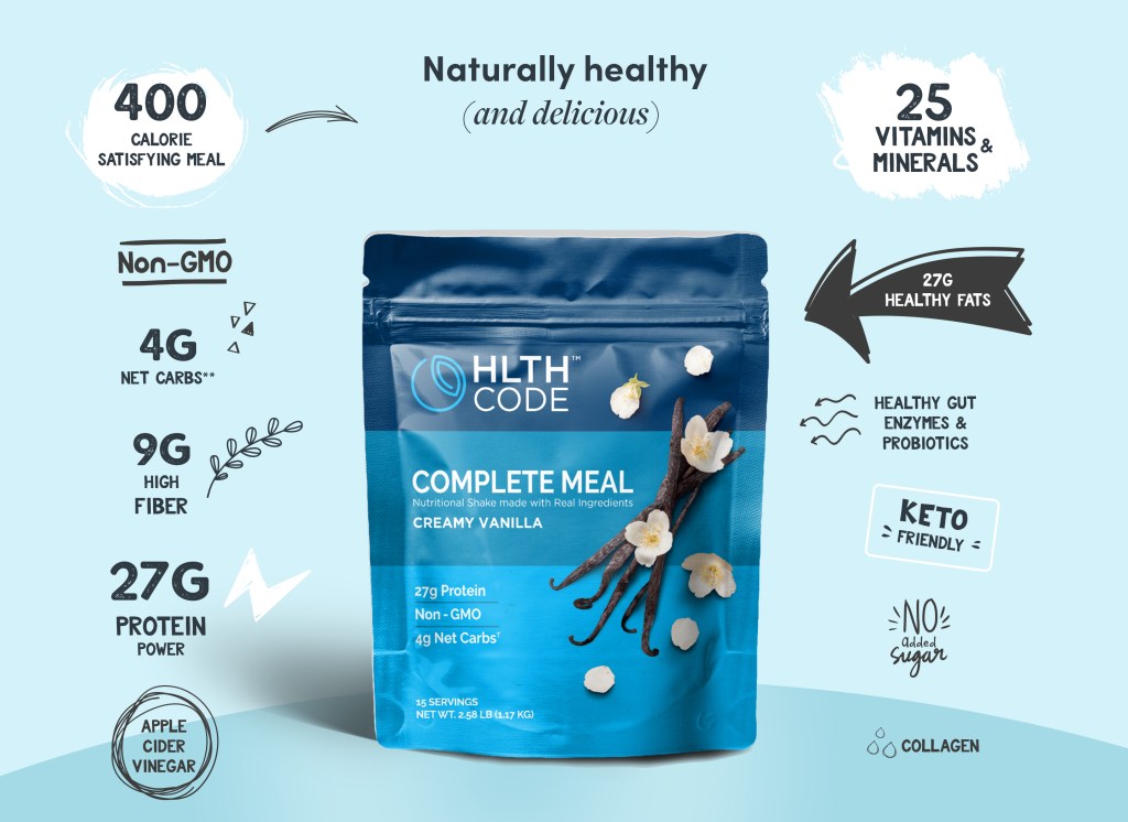 HLTH Code recommends following a low-carb diet and replacing one meal a day with a meal replacement shake from HLTH Code to help you feel your best and live a healthy life.