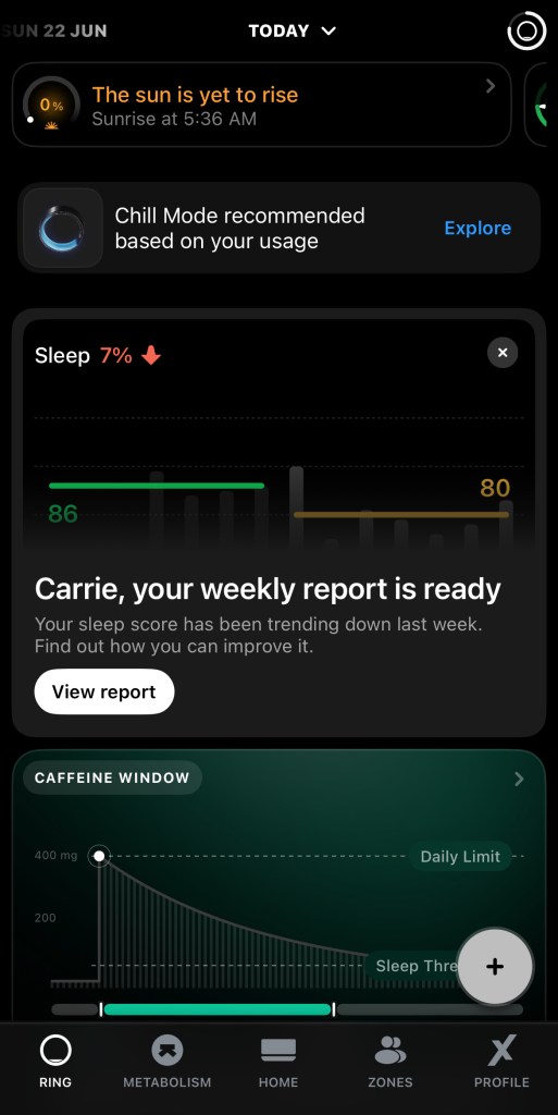 - Caffeine Awareness: I’ve adjusted when I have my last cup of coffee based on the ring’s feedback, and I’ve been sleeping so much better.